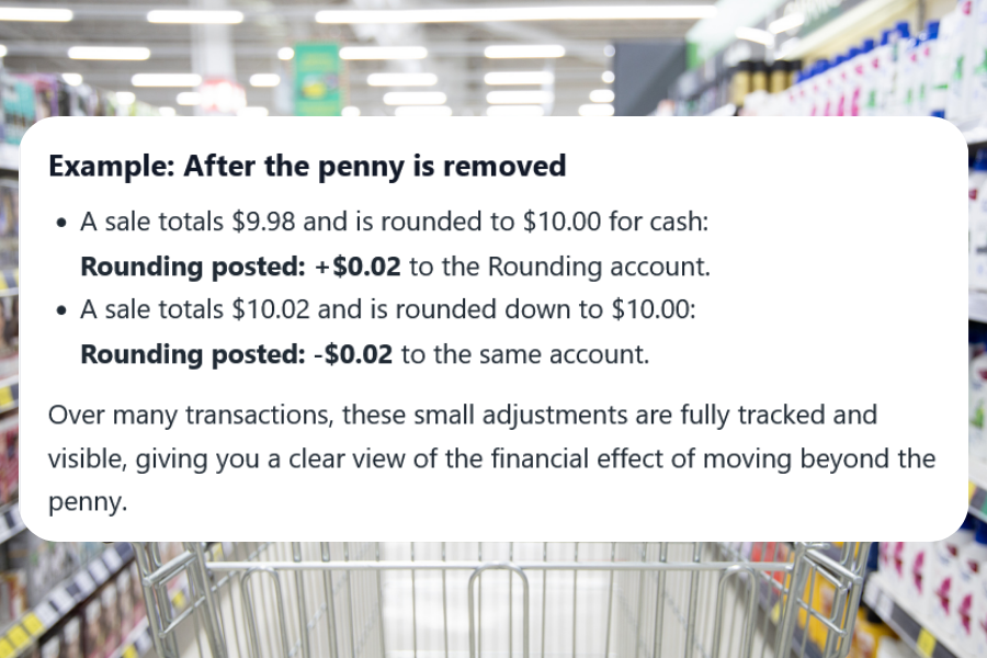 - Automatic rounding of cash totals once pennies disappear, cash totals are adjusted to the nearest valid coin, with no change to your item prices or tax logic.